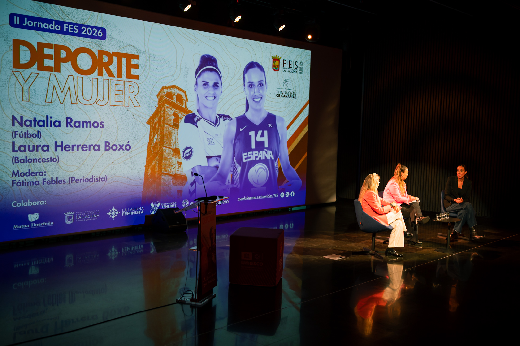 El Ayuntamiento de La Laguna, a través del Foro Económico y Social y la Fundación Club Baloncesto Canarias, celebró este viernes la II Jornada FES 2026 ‘Deporte y Mujer’, en su afán por seguir generando espacios de reflexión. El foro puso de relevancia la importancia de continuar rompiendo barreras en el deporte como motor de igualdad e inclusión, y que así se impulsen cambios para seguir generando espacios de diálogo y reconocimiento a figuras relevantes del deporte femenino.